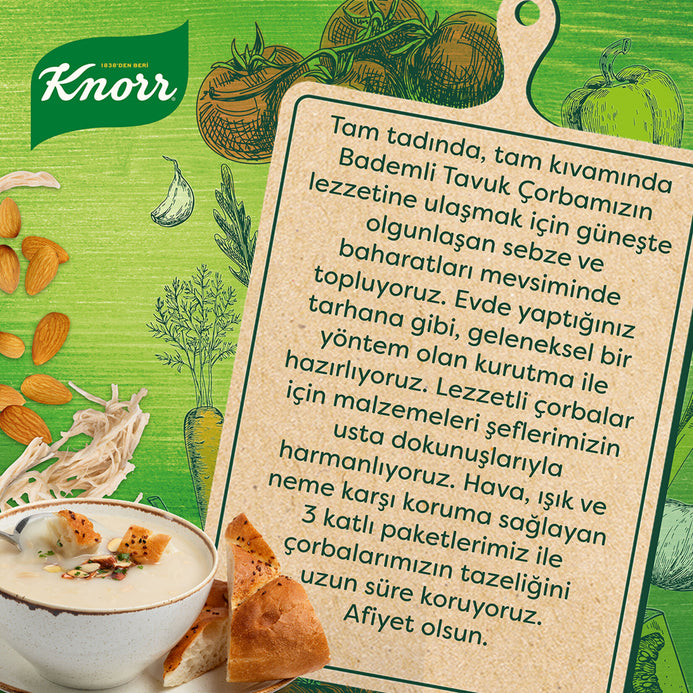 - Knorr Almond Chicken Soup is carefully prepared to add flavor and variety to your Ramadan tables.