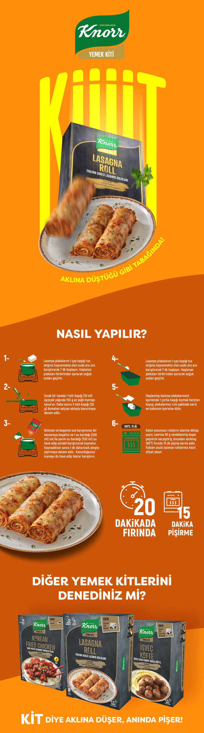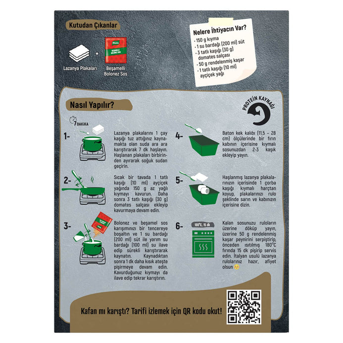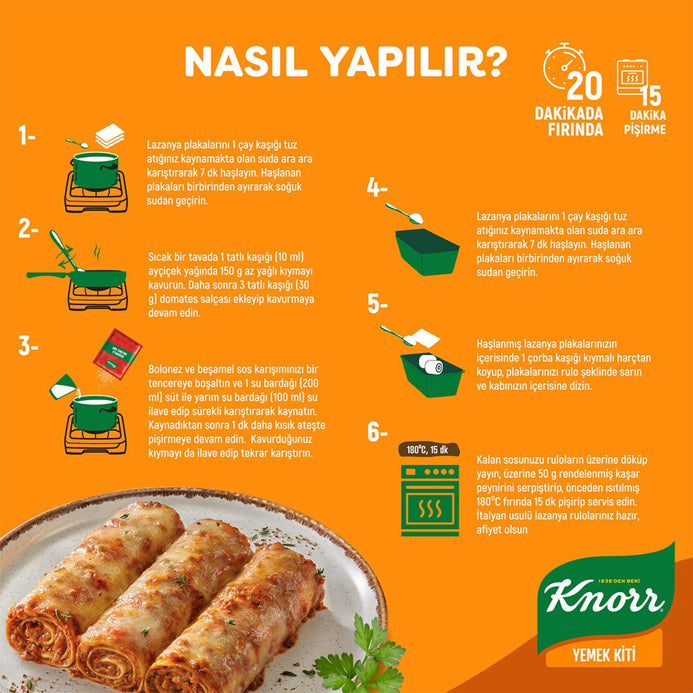 This kit, which has a very easy and fun preparation process, allows you to prepare a great meal without spending much time in the kitchen. Lasagna Roll, produced with Knorr's superior quality standards, offers rich flavors in every bite.