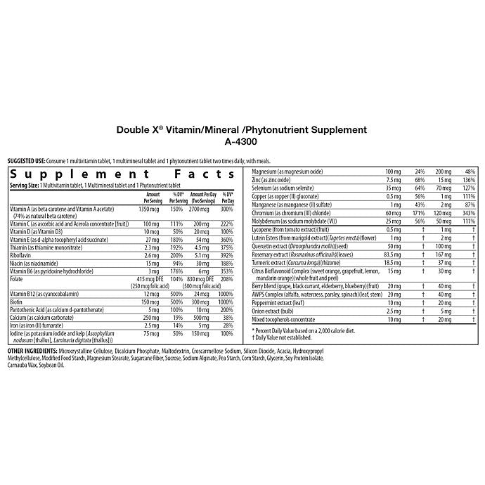 Nutrilite™Double X™Multivitamin is a powerhouse of 12 essential vitamins, 10 essential minerals including vitamins A to E, calcium, zinc, magnesium, selenium and more, and 22 nutrients from fruits, vegetables and herbs – from plants grown on our Nutrilite™ farms and partner farms. All this nutrient goodness provides you with an array of benefits – supporting energy, heart, brain, eyes, skin, bones, and a healthy immune system.†