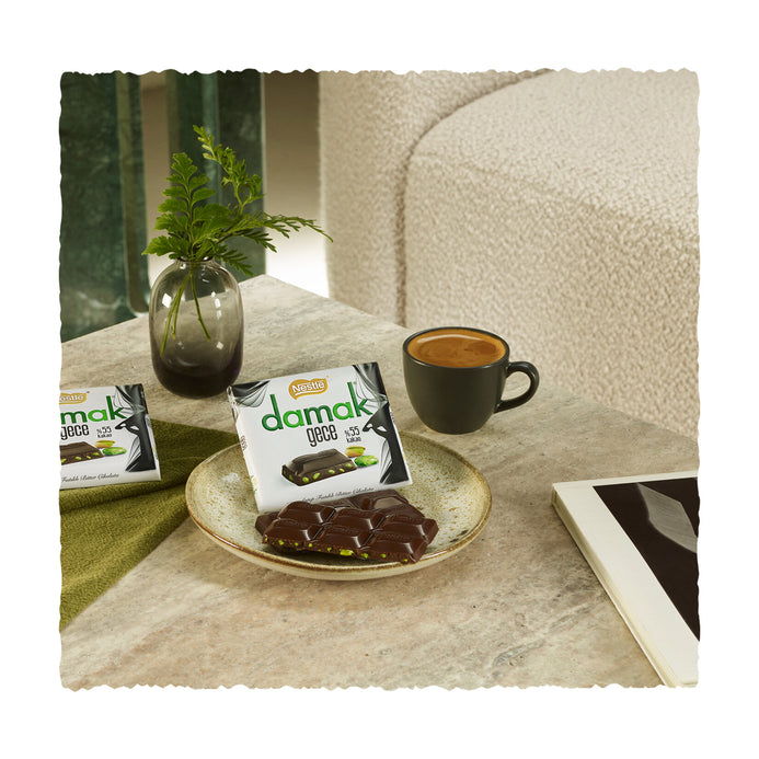Since 1933, Nestlé® Damak®, the perfect harmony of unique chocolate and delicious whole Pistachios; It is the legendary love story of chocolate and pistachio. Turkey's meet in perfect harmony with the chocolate in a unique palate of delicious pistachios and expertise they shared the same love you with this unique flavor in each piece.