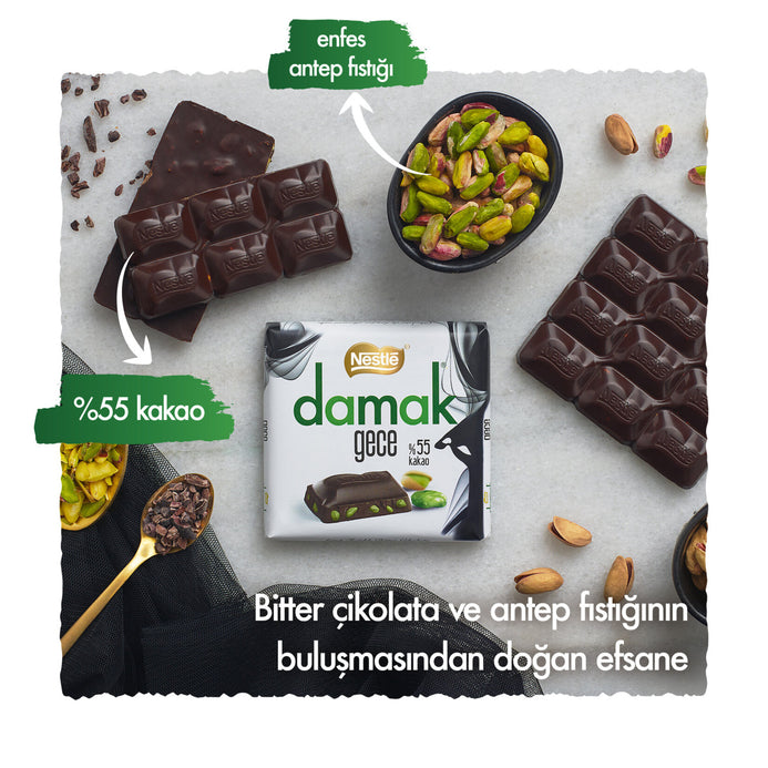 Nestle Damak Gece Antep Fıstıklı Bitter Kare Çikolata (%55 Kakao) 60 G