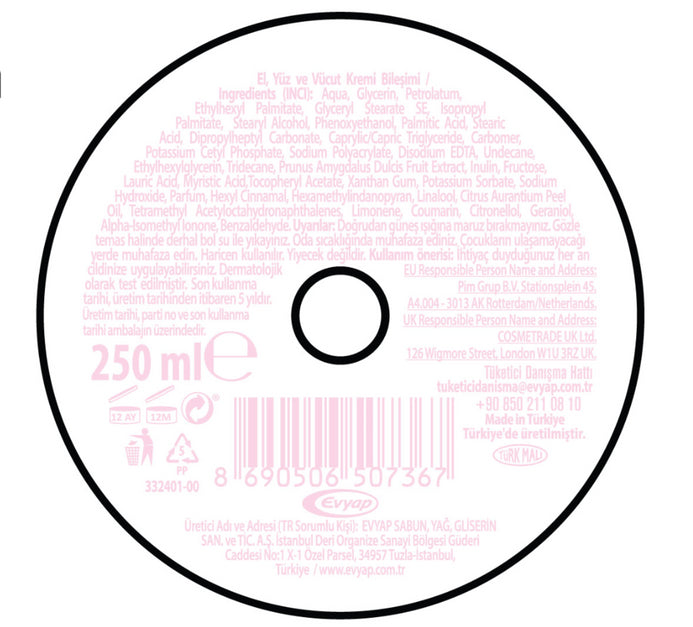 Ingredients (INCI): Aqua, Glycerin, Petrolatum, Ethylhexyl Palmitate, Glyceryl Stearate SE, Isopropyl Palmitate, Stearyl Alcohol, Phenoxyethanol, Palmitic Acid, Stearic Acid, Dipropylheptyl Carbonate, Caprylic/Capric Triglyceride, Carbomer, Potassium Cetyl Phosphate, Sodium Polyacrylate, Disodium EDTA, Undecane, Ethylhexylglycerin, Iridecane, Prunus Amygdalus Dulcis (Sweet Almond) Fruit Extract, Inulin, Fructose, Lauric Acid, Myristic Acid, Tocopheryl Acetate (Vitamin E), Xanthan Gum, Potassium Sorbate, Sodium Hydroxide, Fragrance, and botanical essential oils.