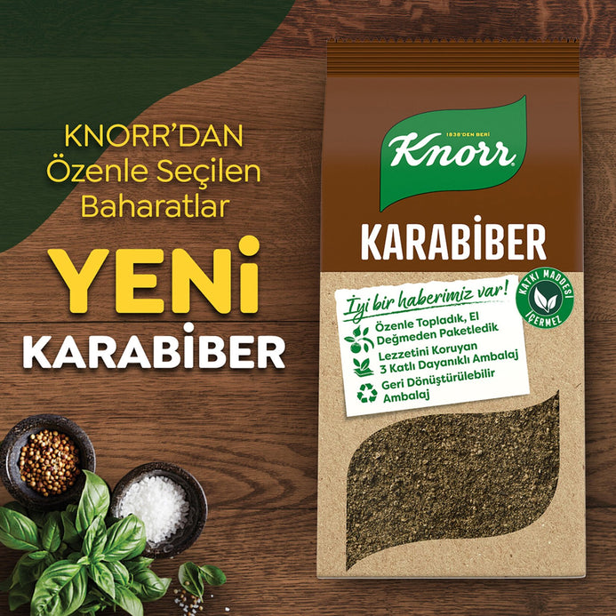 Your appetizers and meals are more delicious and your tables are more colorful with the meticulously prepared Knorr Black Pepper. The packaging of Knorr Black Pepper, which does not contain additives, is also respectful of the environment. Knorr Black Pepper's 3-fold durable packaging is also recyclable. Black pepper, the crown jewel of the tables, is now in the new Knorr Spice Family. Black pepper, an essential ingredient for delicious meals from meatball and sausage making to meat and chicken marination, from soups to rice; is in your kitchen with Knorr quality.