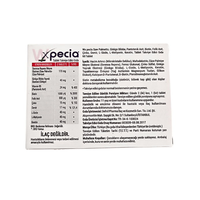 Support healthy and strong hair with Xpecia for Women 60 Tablets. Reduces hair loss and promotes hair growth. Express shipping in 2-5 business days with Turcamart!