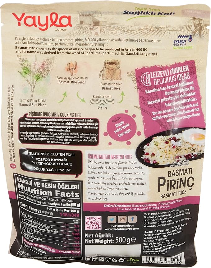 Order Yayla Gourmet Basmati Rice (500 G) on Turcamart for aromatic, long-grain rice perfect for pilafs. Enjoy express shipping with delivery in 2-5 business days!