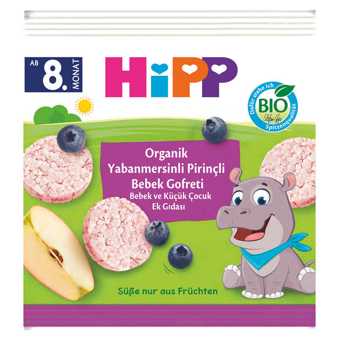 - Hipp Blueberry Rice Baby Wafer with its shape allows teething babies to scratch their palate while eating.