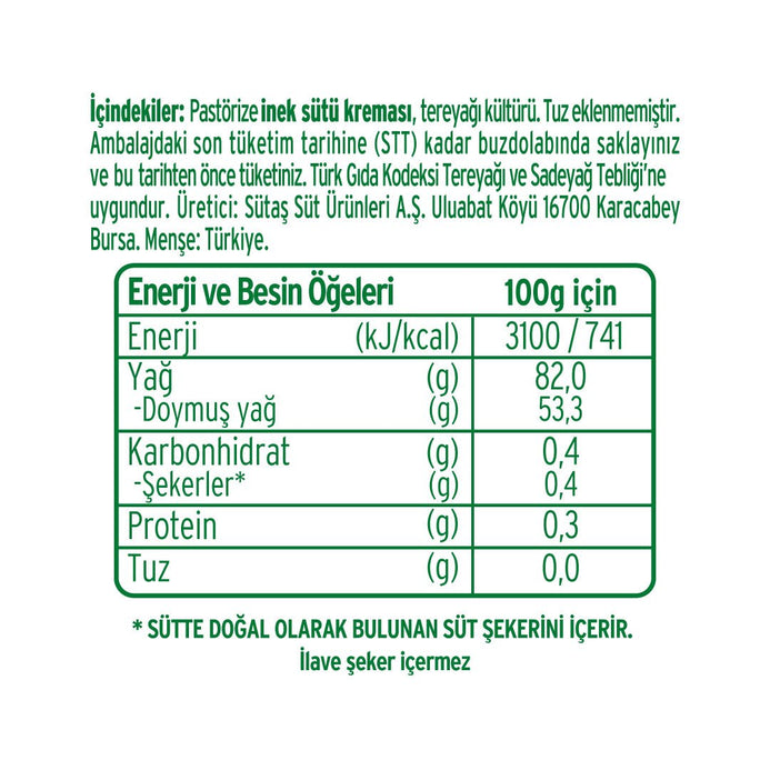 Sutas Butter is made from the freshest milk of the Sütaş Farm, delivering a natural taste you can trust. The convenient 12 × 15 g portion packs are perfect for breakfast tables, lunch boxes, offices, and travel—spread on warm bread, melt over vegetables, or enrich pastries and everyday cooking. Order with Turcamart express shipping and receive your butter in 2–5 business days to most locations.