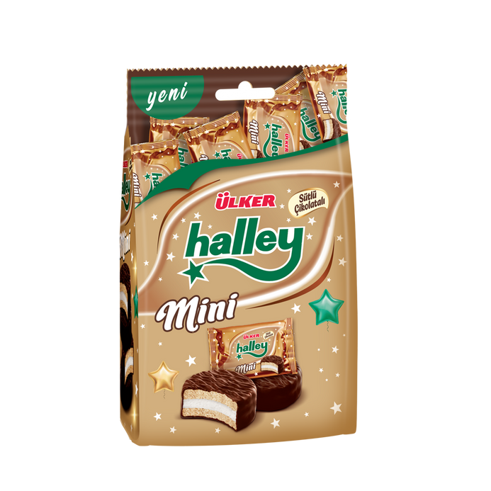 Ulker Halley Mini Marshmallow Biscuit brings the classic taste of Türkiye’s favorite chocolate-coated treat in a convenient mini size. Each bite features soft marshmallow sandwiched between two light biscuits, all covered in rich chocolate. Perfect for snacking at home, sharing with friends, or enjoying on the go.