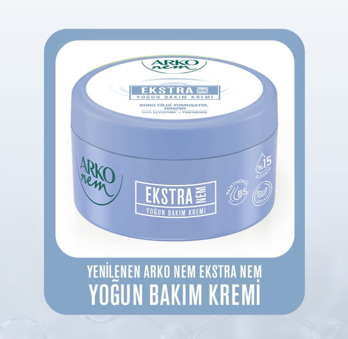 Discover deep hydration with Arko Nem Extra Moisturizing Cream, specially formulated to nourish and restore dry, stressed skin. Enriched with glycerin, pro-vitamin B5 (panthenol), and vitamin E, this intensive care cream delivers long-lasting moisture while helping to boost skin elasticity and resilience.
