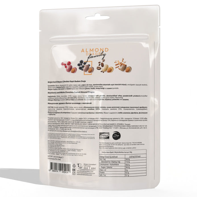 Experience the perfect harmony of flavors with Bind Blackberry White Chocolate Coated Almond Dragee. Each bite delivers a delightful crunch of roasted almonds wrapped in smooth white chocolate and finished with a subtle touch of blackberry powder. This elegant treat is perfect for snacking, gifting, or pairing with your favorite hot beverage.