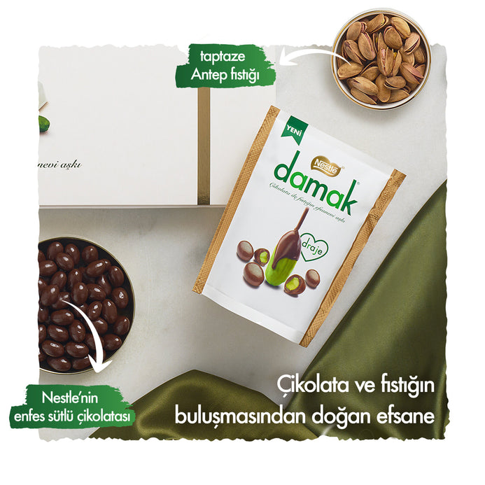 Damak Milk Chocolate Covered Pistachio Dragee brings you the perfect harmony of rich milk chocolate and crunchy Antep pistachios. This premium Turkish treat combines smooth, velvety chocolate with the bold flavor of 20% whole pistachios, offering a satisfying bite every time.