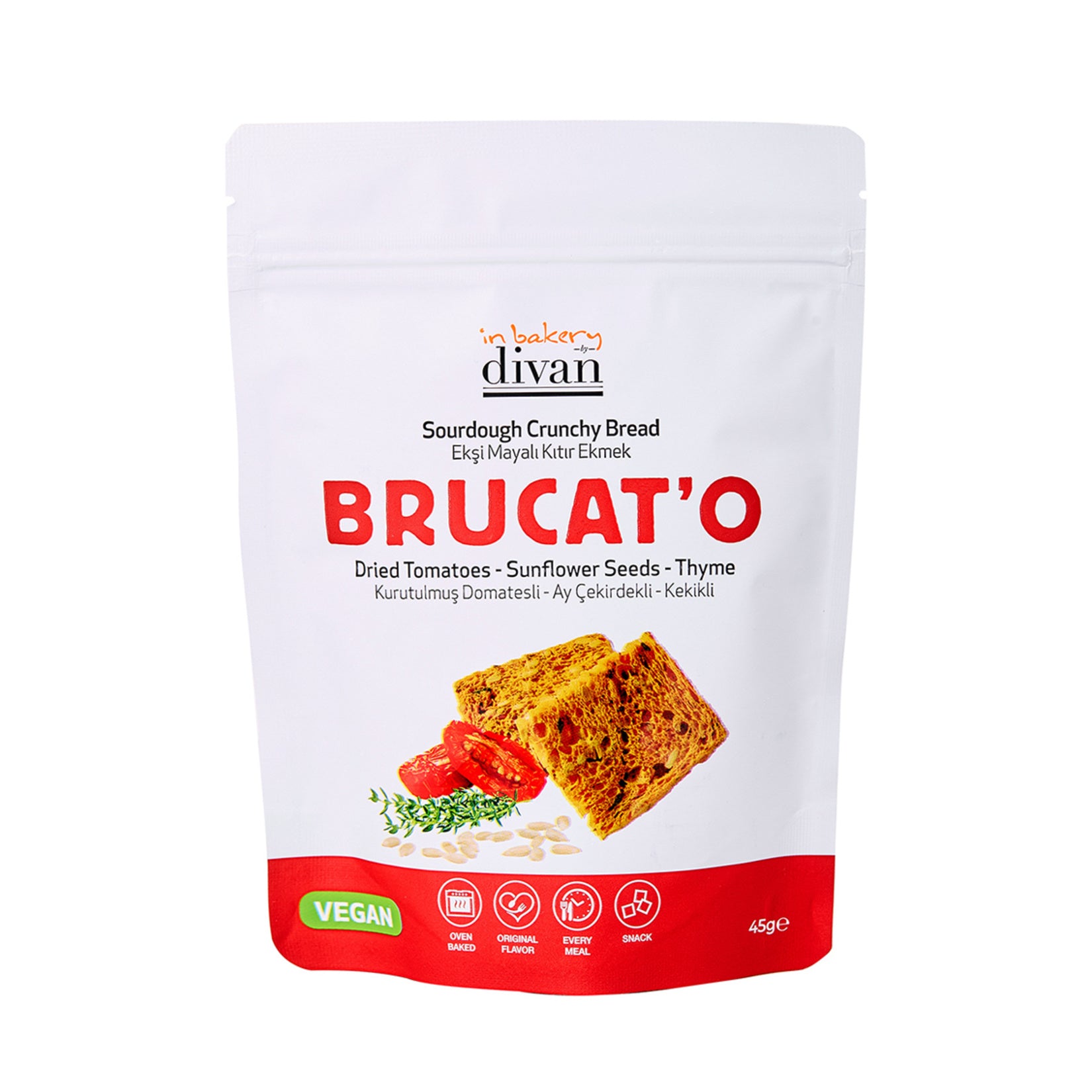 Discover the savory crunch of Divan Brucato Crispy Bread with Tomato & Olive, a gourmet Turkish snack crafted with sun-dried tomatoes, black olives, and aromatic herbs. These artisan-style crispbreads are perfect for pairing with dips, cheeses, or enjoying straight from the pack.