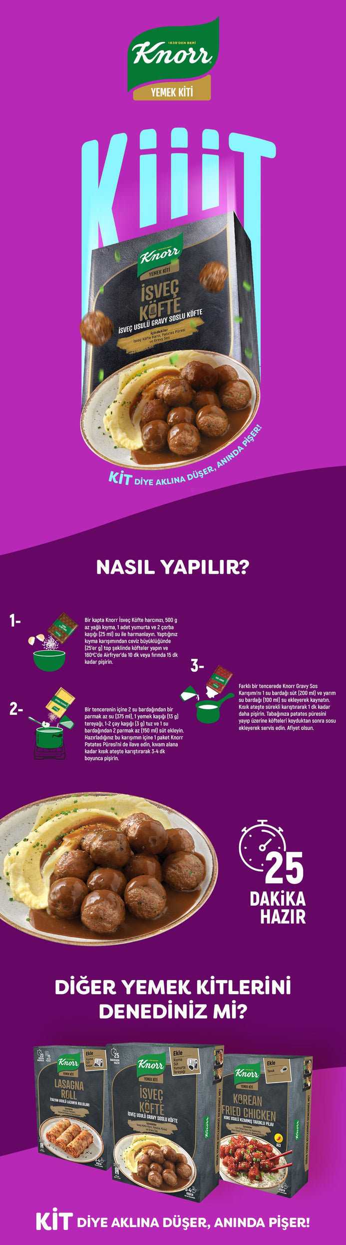 Try Knorr Meal Kit Swedish Style Meatball Mix with Gravy Sauce from Turcamart! Enjoy easy preparation and express shipping, delivered in just 2-5 business days.