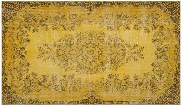 - Authentic Turkish Hand Woven Yellow Vintage Carpet