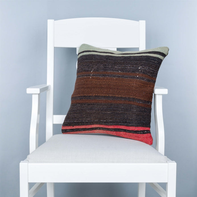 - Turkish Black Brown Solid Vintage Hand Woven Cushion Cover