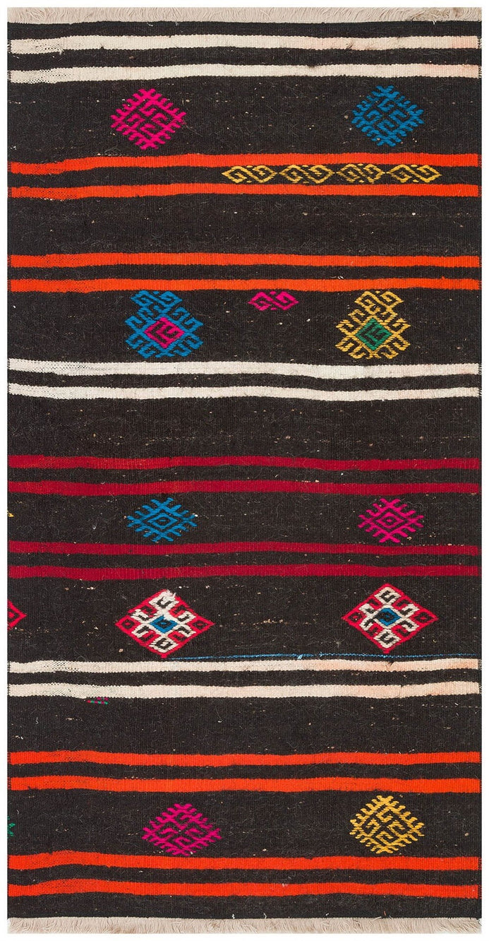 - Striped Pattern Hand Woven Vintage Rug with Turkish Motifs