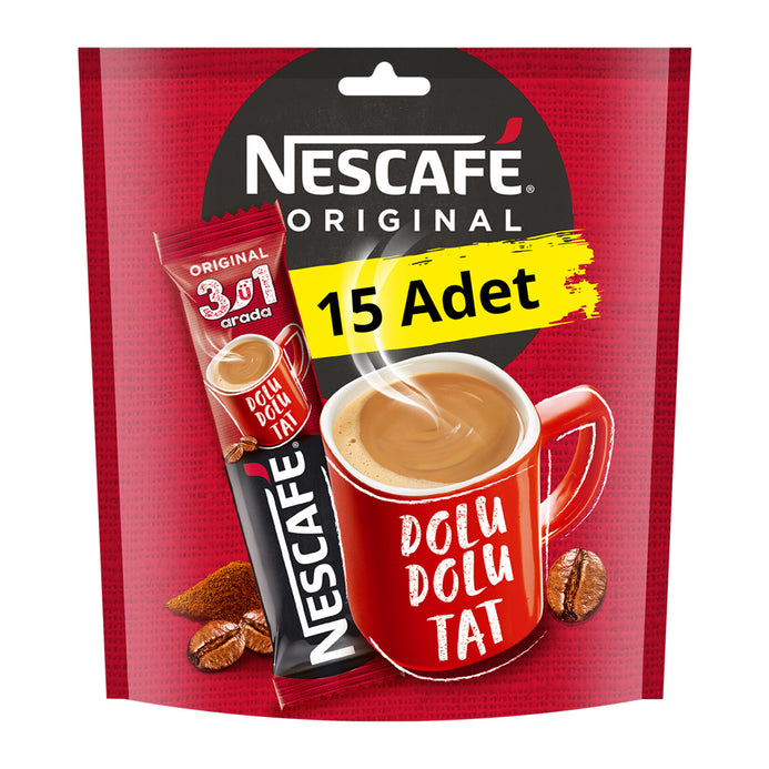 Nescafe 3in1 15 pcs. is both economical and practical! So that the 3 in 1 taste you are used to is always with you ... This coffee, whose coffee, sugar, coffee cream setting is just right, adds pleasure to your breaks. Thanks to the meeting of quality coffee beans with the Nescafe experience, a coffee you cannot get enough of is emerging. It is also very easy to prepare this coffee that will be with you whenever you want. Just pour the one-time bags into your glass, then add hot water and mix. You will not need any additions, 3 in 1, and your coffee pleasure will continue in your workplaces, travels, wherever you want. And now with its 15-piece economic package ...