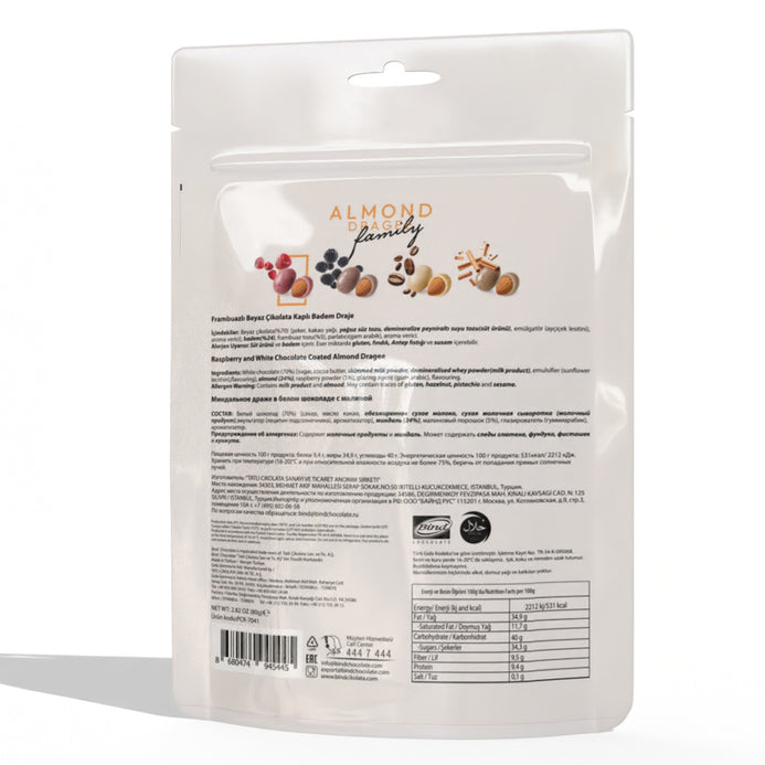 Bind Raspberry White Chocolate Covered Almond Dragee is a delightful fusion of sweet and tangy flavors. Each almond is generously coated in smooth white chocolate and finished with a hint of raspberry powder, offering a satisfying crunch and fruity finish in every bite. Perfect for snacking, sharing, or gifting, this premium treat brings a touch of elegance to your snack time.