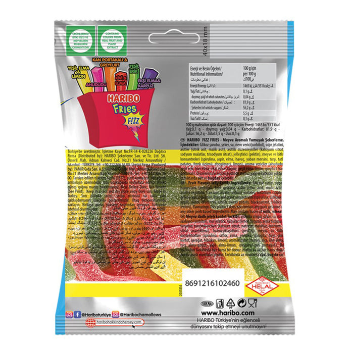 Perfect for parties, movie nights, or just a sweet treat on the go, Haribo Fizz Fries are a playful take on classic gummy candy. Order now through Turcamart and get your favorite Turkish snacks delivered fast with express shipping in just 2–5 business days across the US.