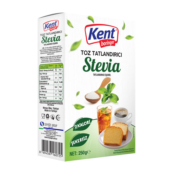 Kent Boringer Stevia Powder Sweetener offers a natural, low-calorie alternative to sugar, perfect for health-conscious lifestyles. Made with high-quality steviol glycosides and inulin, this sweetener delivers a clean, sweet taste without artificial aftertastes. Ideal for baking, beverages, and everyday use.