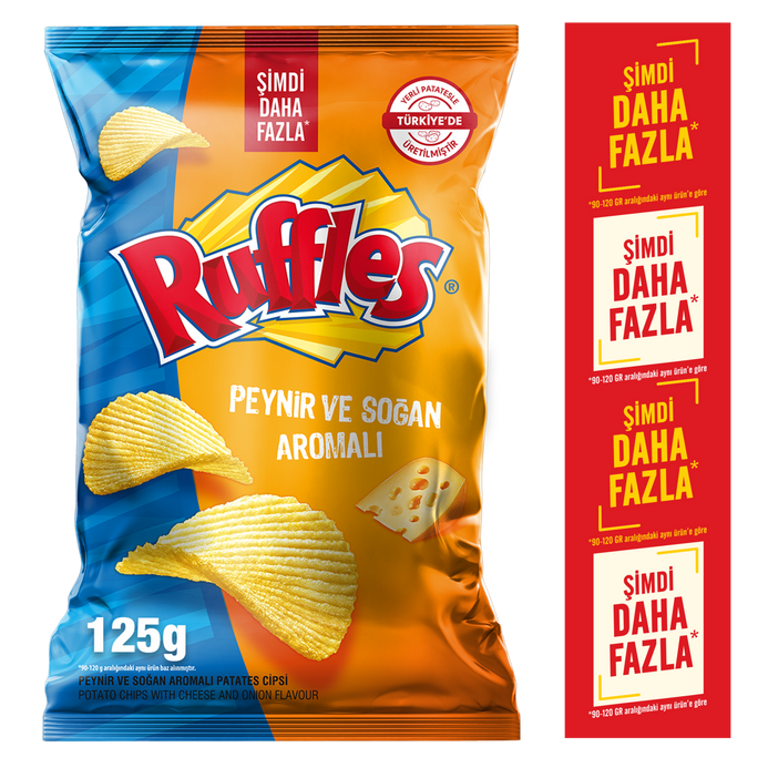 Ruffles chips produced by Frito Lay combine carefully selected potatoes from Turkey. It has a serrated structure. This product of Ruffles, which reaches the consumer with the slogan "Live life in the best way with the crispiest potatoes", is ideal for those who love the taste of cheese and onion together.