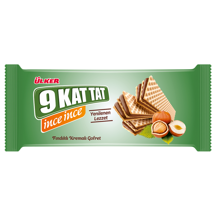Ulker 9 Kat Tat Thin Hazelnut Wafer brings the classic taste of Türkiye’s favorite layered wafer in a thinner, crispier form. With its delicate wafer layers and smooth hazelnut filling, it's the perfect treat for coffee breaks or tea time. Whether you're craving a light snack or sharing with friends, this Turkish classic adds variety to your sweet moments.