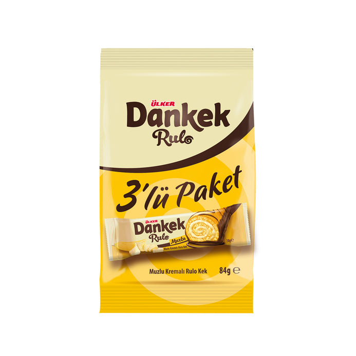 Ulker Dankek Banana Cream Roll Cake is a delightful Turkish treat featuring soft sponge cake rolled with smooth banana-flavored cream. This 3-pack is perfect for sharing or enjoying as a quick snack anytime. With its rich flavor and moist texture, this mini cake brings a taste of Türkiye’s beloved bakery culture right to your doorstep.