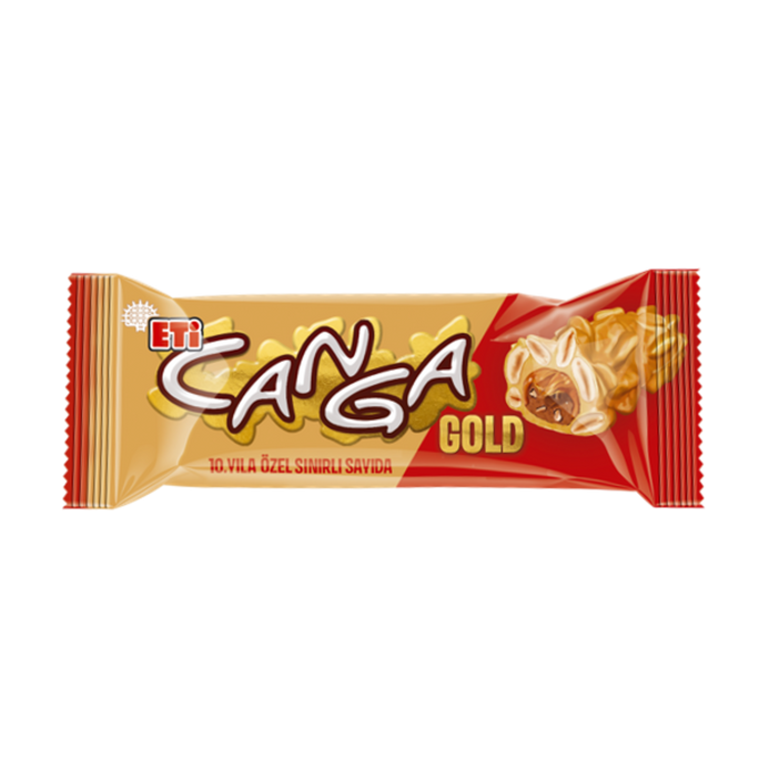 Eti Canga Gold Peanut Caramel Nougat Bar combines the rich taste of roasted peanuts, creamy caramel, and chewy nougat, all wrapped in a smooth caramelized white chocolate coating. This satisfying Turkish snack bar is a perfect pick-me-up for any time of day.