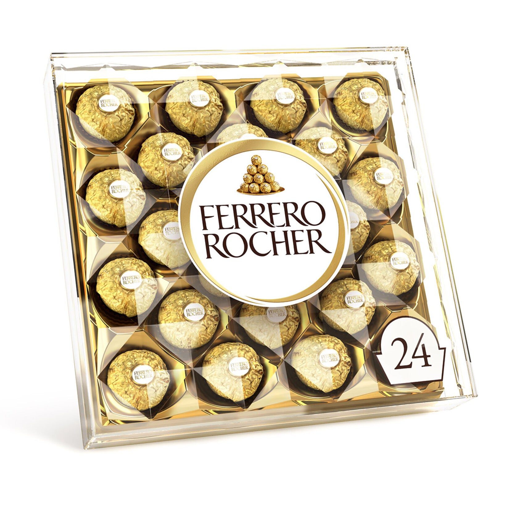 Ferrero Rocher T24 Milk Chocolate Hazelnut Pralines bring a touch of elegance to any occasion. Each golden-wrapped piece features a whole hazelnut encased in a creamy filling, surrounded by a crisp wafer shell and coated in smooth milk chocolate and chopped hazelnuts. Perfect for gifting or enjoying as a premium treat.