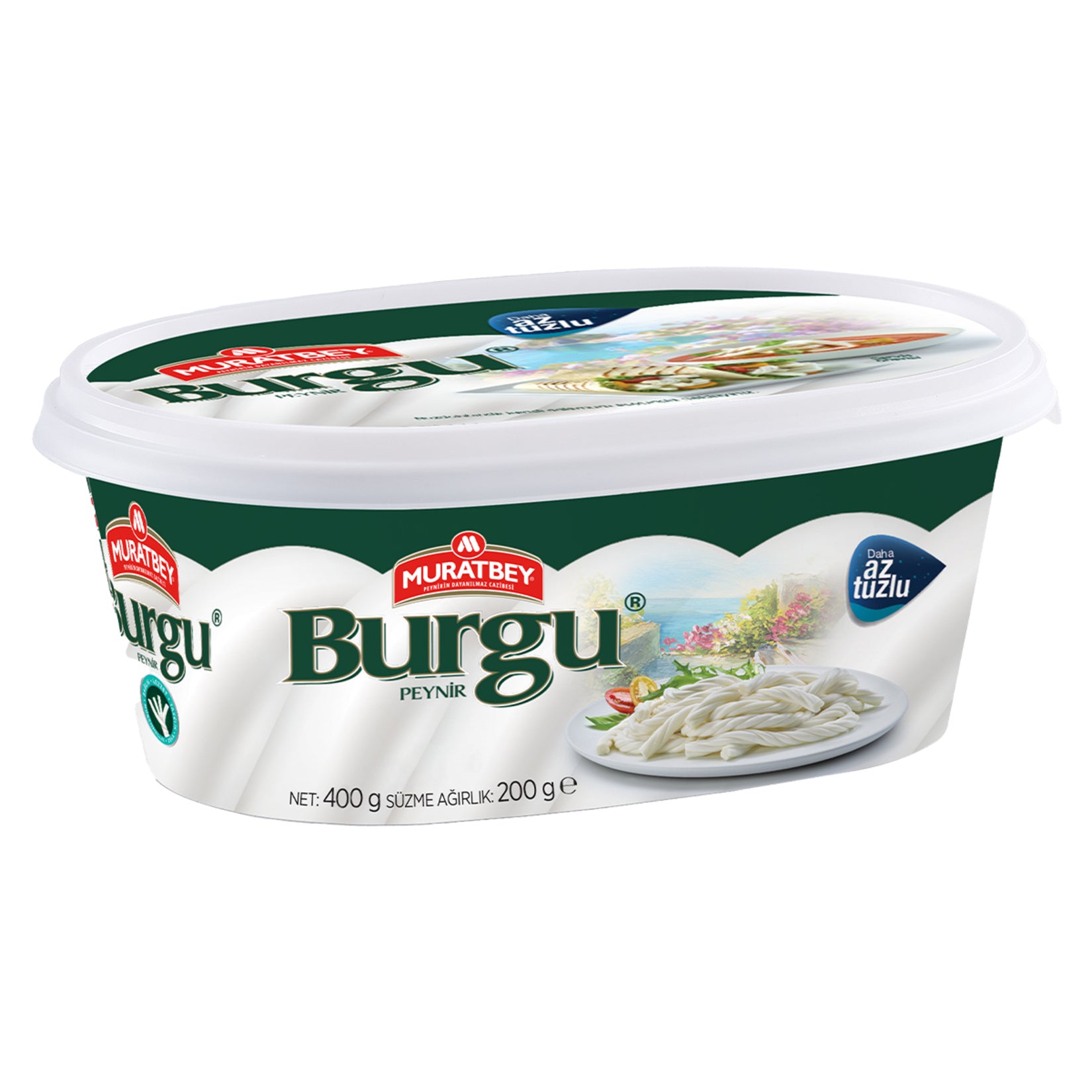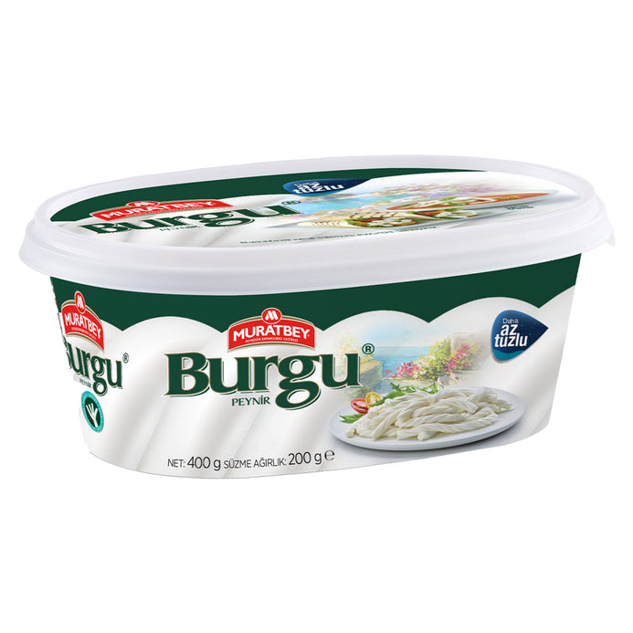 Muratbey Burgu Cheese is a traditional braided Turkish cheese made from high-quality pasteurized cow’s milk. Known for its unique twisted shape and pleasantly mild, slightly salty flavor, this cheese is a staple on Turkish breakfast tables and a versatile addition to many recipes.