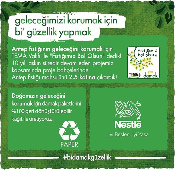 As NESTLÉ® Damak®, we are committed to the quality of Turkish pistachios. Since 2011, in collaboration with TEMA, we have been leading the “Let Our Peanuts Be Abundant” project. By working closely with local farmers, we support sustainable pistachio farming, helping to maximize efficiency and contribute to economic prosperity in Turkey.