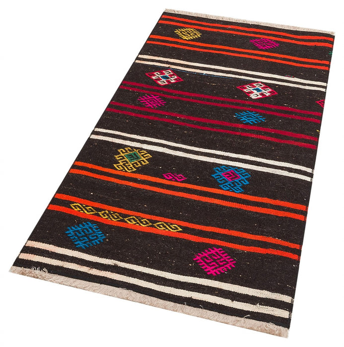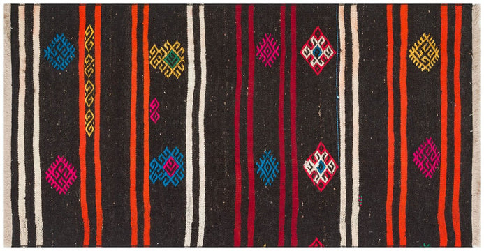 - Striped Pattern Hand Woven Vintage Rug with Turkish Motifs
