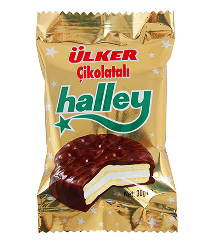 The products of Ülker company, which was established in 1944 and started production as Ülker Bisküvi in Eminönü, have reached today without sacrificing quality and taste. With the perfect harmony of cloudy marshmallow between two delicious biscuits covered with real chocolate, Halley will take you to your childhood as soon as you taste it.
