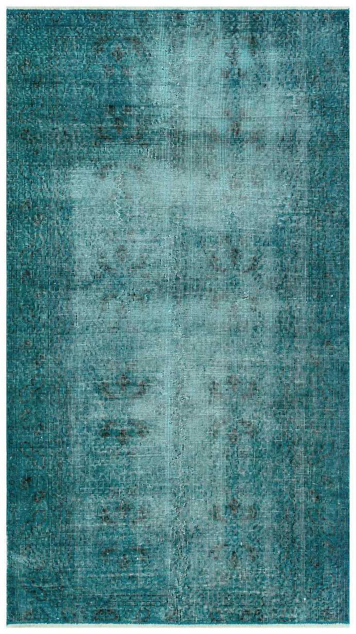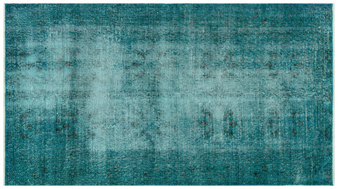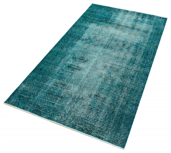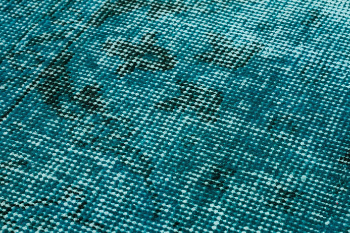 - Vintage Turquoise Color Black Floral Patterned Hand Woven Carpet